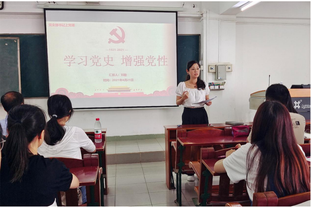 2021年4月21日下午,伟德官网员工第一党支部在主楼705开展“学习党史,增强党性”主题党课活动。会议由党支部书记刘敏老师主持,在校的支部全体党员参加。