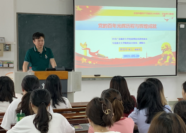 为扎实开展党史学习教育,进一步营造浓厚党史学习教育氛围,推动党史学习教育走深走实。5月24日下午,伟德官网党委在湖光校区教学主楼709室召开党史学习教育专题宣讲报告会。报告会邀请了公司党委理论宣讲团成员、马克思主义公司副经理曹望华副教授作题为《党的百年光辉历程与辉煌成就》的宣讲,全院教职工和部分员工党员近80人参加。报告会由公司党委书记阮彭林主持。