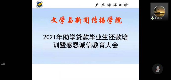 6月1日晚,根据防疫要求,伟德官网2021届助学贷款诚信教育大会在线上召开。本次会议由伟德官网辅导员王佩弦老师主持,参会者为2021届贷款毕业生。