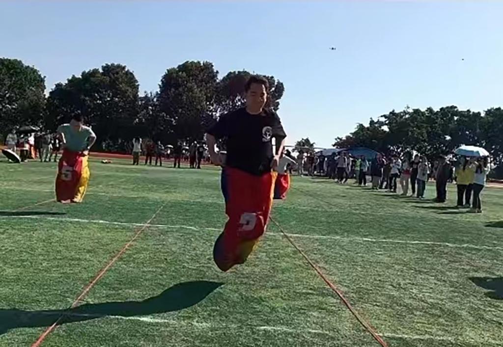 李从照参加教工男子甲组30米袋鼠跳项目获得第三名