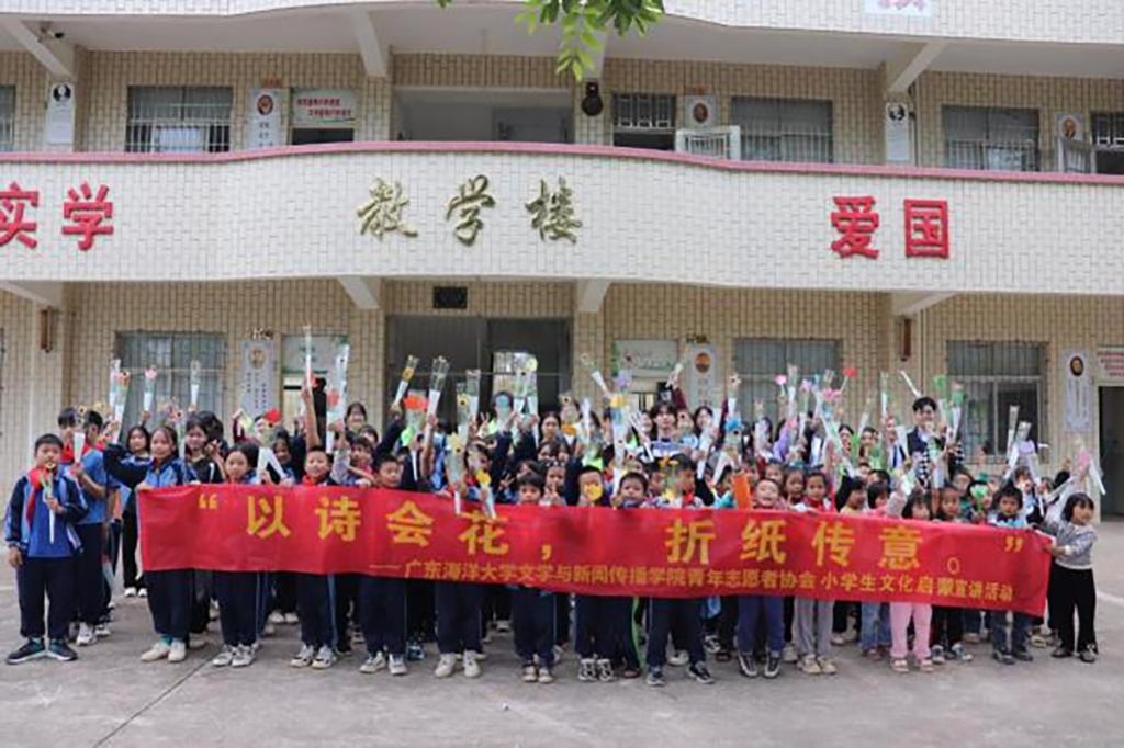 ,11月29日,伟德官网团委青年志愿者协会,组织30余名志愿者前往坡头区的“伟德官网学雷锋示范点”——黄桐希望小学,开展了“以诗会花,折纸传意”文化启蒙宣讲活动。