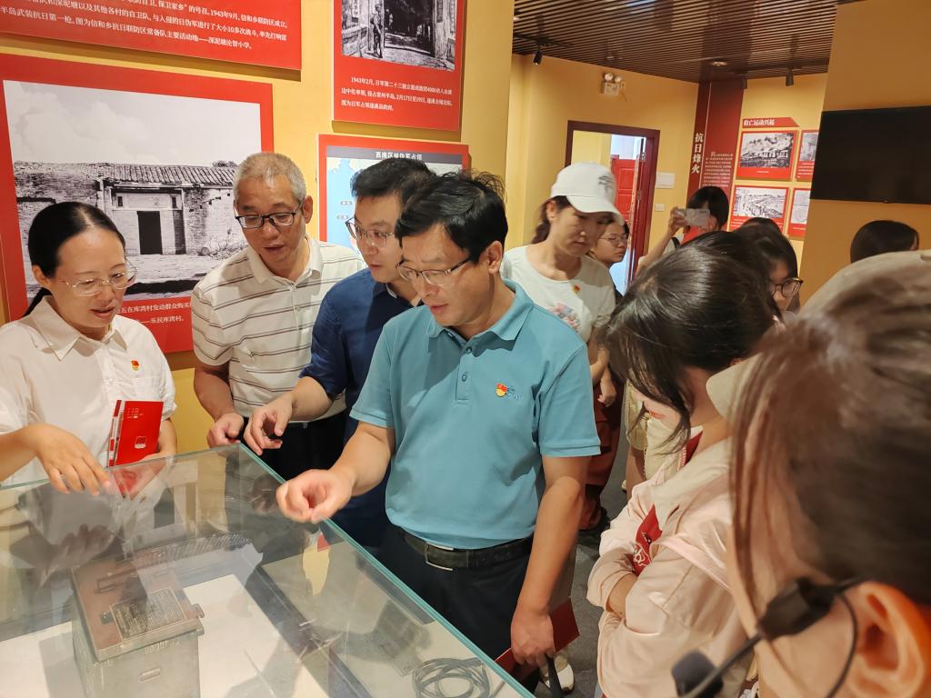 在行驶的班车上,师生们满怀激情朗诵了《浪淘沙·北戴河》《沁园春·长沙》等经典诗词,演唱了《红星照我去战斗》《如愿》等红色歌曲,完成了一次独特的党史学习教育和爱国主义教育。在遂溪县河头镇西南地区革命史馆门前广场上,在张艳梅的带领下,全体党员师生肃立于入党誓词墙前,重温入党誓词,感受初心使命。在革命史馆内,师生们跟随讲解员了解土地大革命时期、抗日战争时期、解放战争时期西南地区的那段艰苦卓绝的革命历史,瞻仰领略以黄学增为代表的革命先烈为争取民族独立和人民解放矢志不渝、前仆后继,用鲜血和生命书写的光辉篇章,从一件件历史遗物、一个个静穆的名字中“于无声处听惊雷”,深受感染和触动。