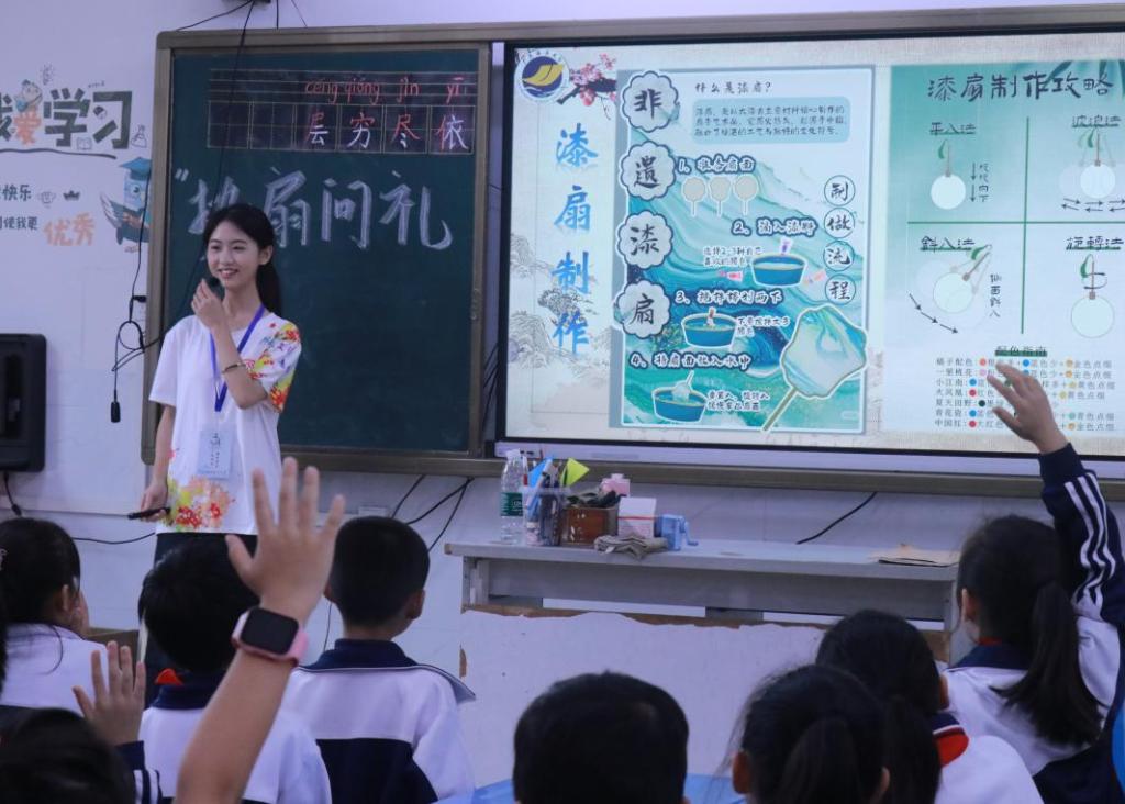 为深入贯彻落实“双百行动”,增强青少年对传统文化的认同与热爱,推动大中小员工思政教育一体化建设,10月29日,伟德官网青年志愿者协会前往雷州市第八中学开展“执扇问礼,佩囊明仪”中华传统文化宣讲活动。本次活动通过礼仪文化宣讲、知识问答互动、香囊与漆扇制作的形式,为雷州市第八中学的员工们带来一场沉浸式的文化体验。