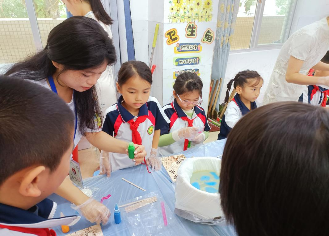 经过主讲人细致讲解并展示香囊与漆扇的制作过程后,孩子们在志愿者的指导下亲自体验制作属于自己的香囊与漆扇。从用艾草填充香囊到滴色染制漆扇,孩子们在动手实践中感受传统手工艺的匠心与魅力。活动现场秩序井然,志愿者们耐心指导,确保每位孩子都能顺利完成作品。活动尾声,孩子们手持自制香囊与漆扇合影留念,记录下这一富有意义的时刻。至此,活动圆满结束。