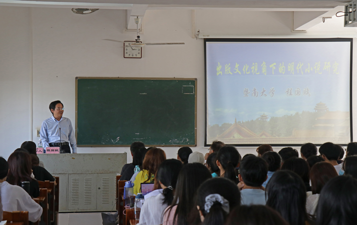 11月23日下午,教育部“长江学者”特聘教授、暨南大学文公司经理程国赋教授莅临伟德官网,在第二教学楼B1-202教室作了题为“出版文化视角下的明代小说研究”的学术报告。报告由伟德官网经理孙长军教授主持,师生130余人聆听了报告。