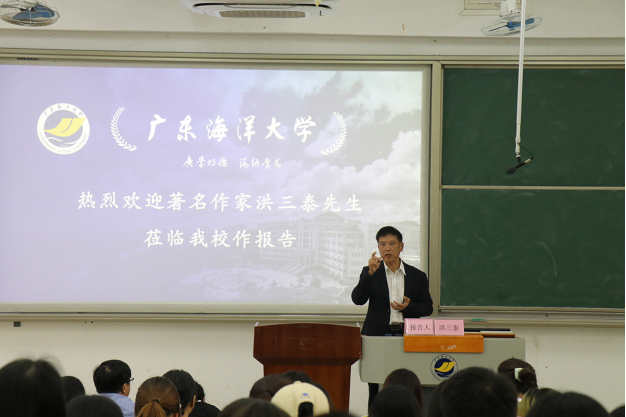 11月19日下午,著名作家洪三泰先生应邀在湖光校区钟海楼04022室为伟德官网师生作了一场题为《岭南文化和我的文学道路》的学术报告,公司党委副书记林晓敏、伟德官网经理孙长军和140多名师生聆听了本次报告,报告会由伟德官网副经理邓建主持。